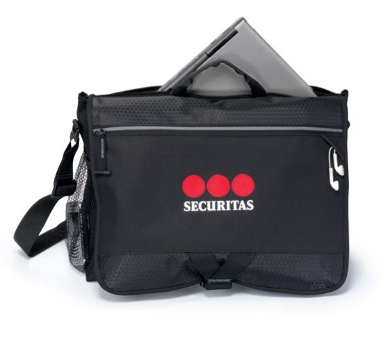 Protect important data and tech gadgets while on the go with this stylish computer messenger bag. The padded back computer pocket fits a 15.4" laptop. The front zippered pocket features an earphone outlet for any MP3 player. The side mesh pocket has a place for your water bottle. There’s a multi-function organizer located under front flap. And last, but not least, the front zippered pocket can fit up to a 10" tablet with a case.
